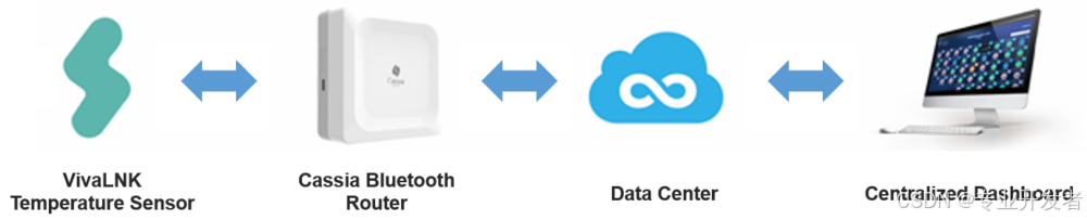 VivaLNK 联合亿晋健康,选用了 Cassia Networks 的蓝牙网关,共同打造了一套完整的健康监测方案。Cassia 的蓝牙网关用于将传感器采集的患者体温数据无线传输至中央数据看板,医护人员可通过看板持续查看关键生命体征;当患者体温超过预设阈值时,系统会自动发出警报。这一方案不仅减少了对患者的常规线下巡查需求,还降低了交叉感染的风险。