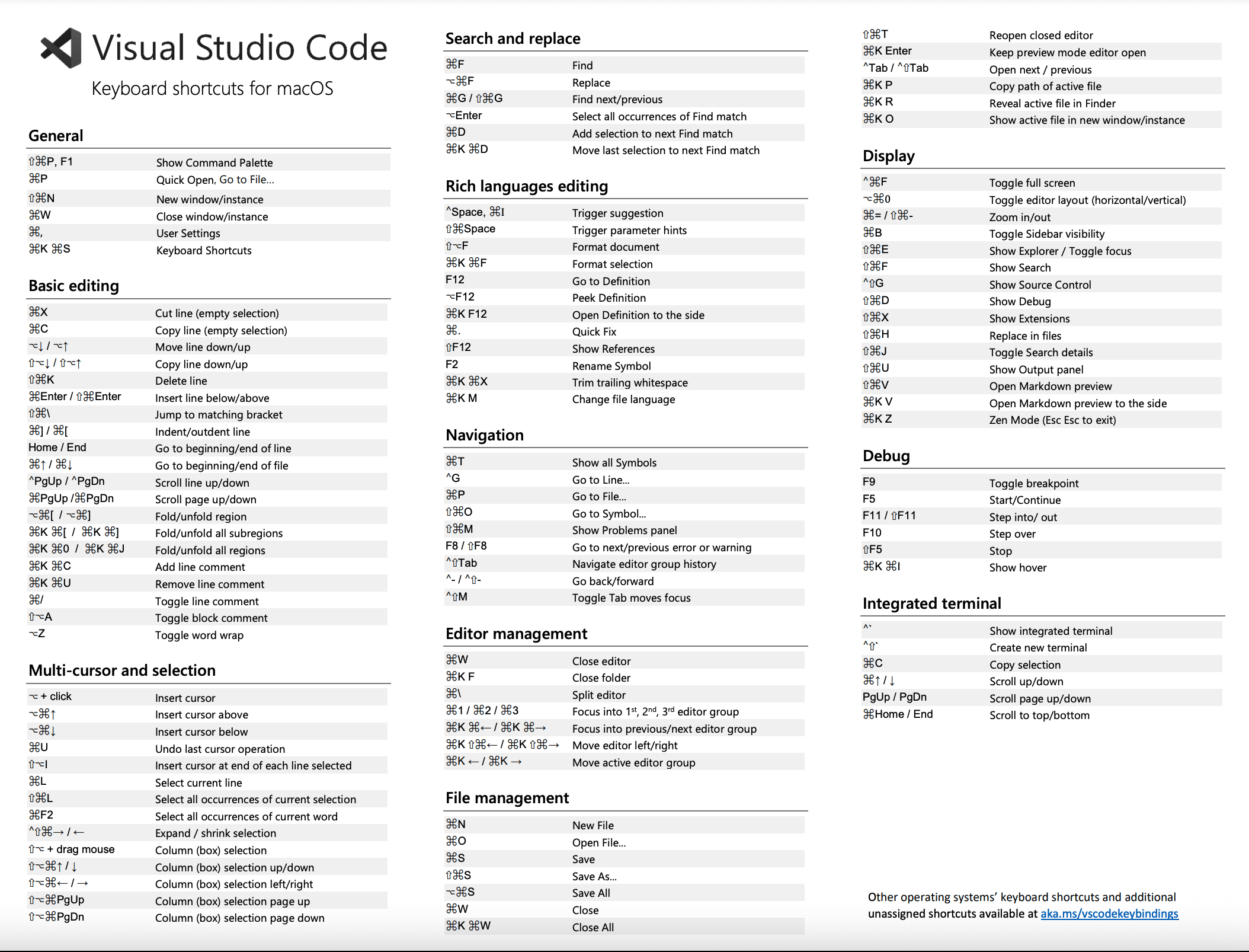 | ⌘ + K ; ⌘ + S | 键盘快捷键 |