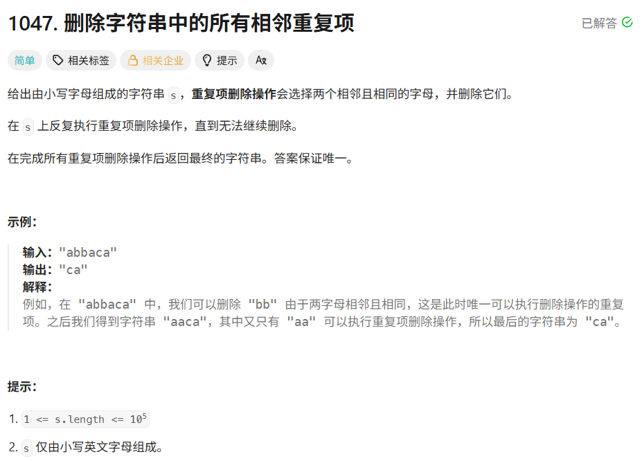 // 弹出栈顶字符,消除这一对相邻重复字符