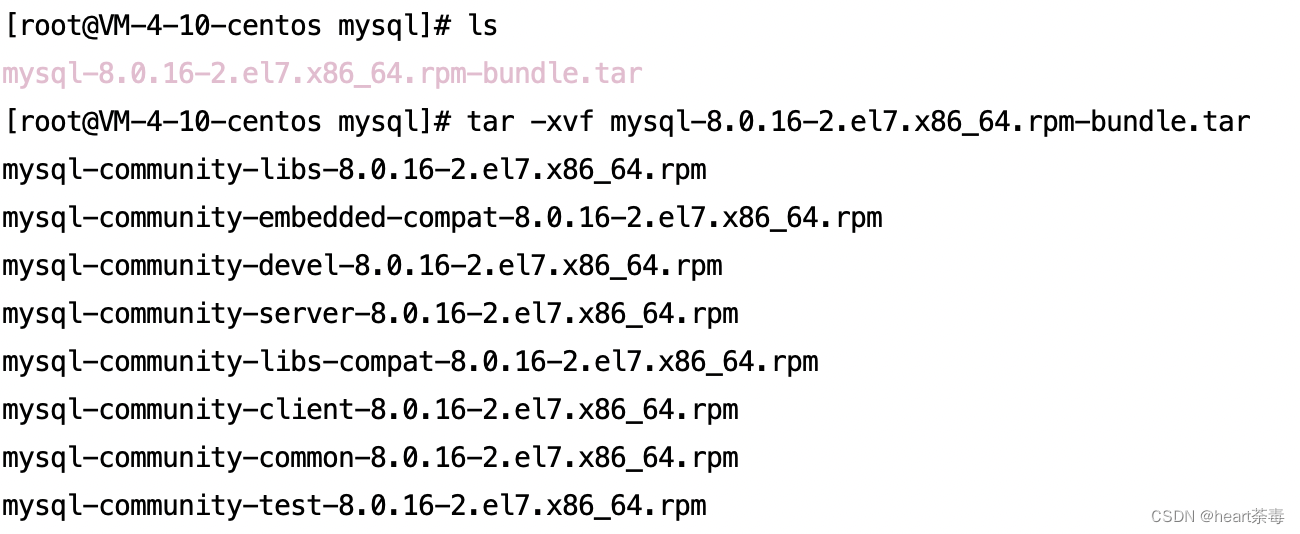 tar -xvf mysql-8.0.16-2.el7.x86_64.rpm-bundle.tar
