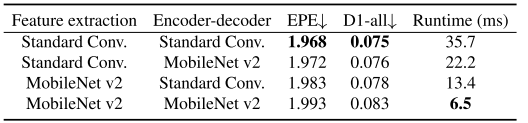 | 模块 | 使用MobileNet? | EPE↓ | 速度(ms) |