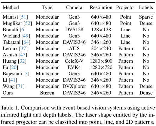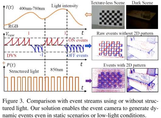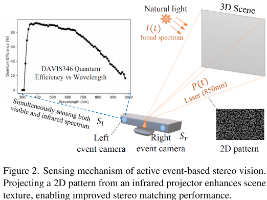 - 首次将主动光投影与双目事件相机结合