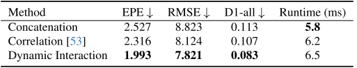 | 代价体构建方式 | EPE↓ | RMSE↓ |