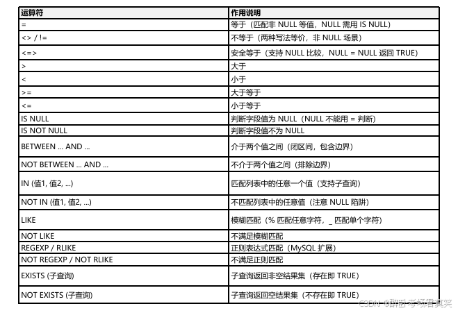 SELECT select_expr,... [ FROM table] [ WHERE condition ] - 查询表达式语法为:select_expr [ [ AS ] alias ]