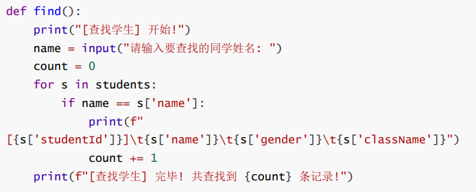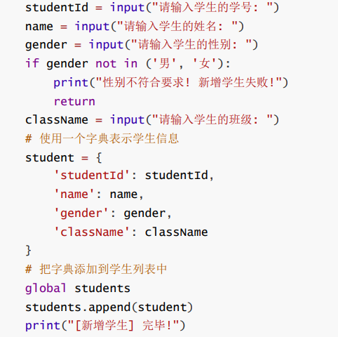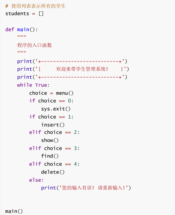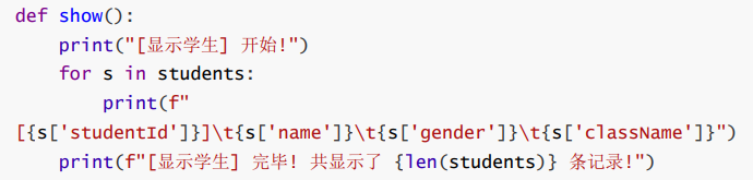 - 使用一个全局列表 students 表示所有学生信息.
