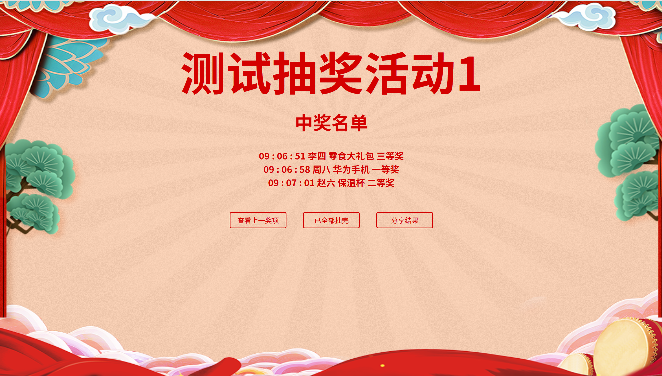 抽完奖品最后进行中奖名单展示: