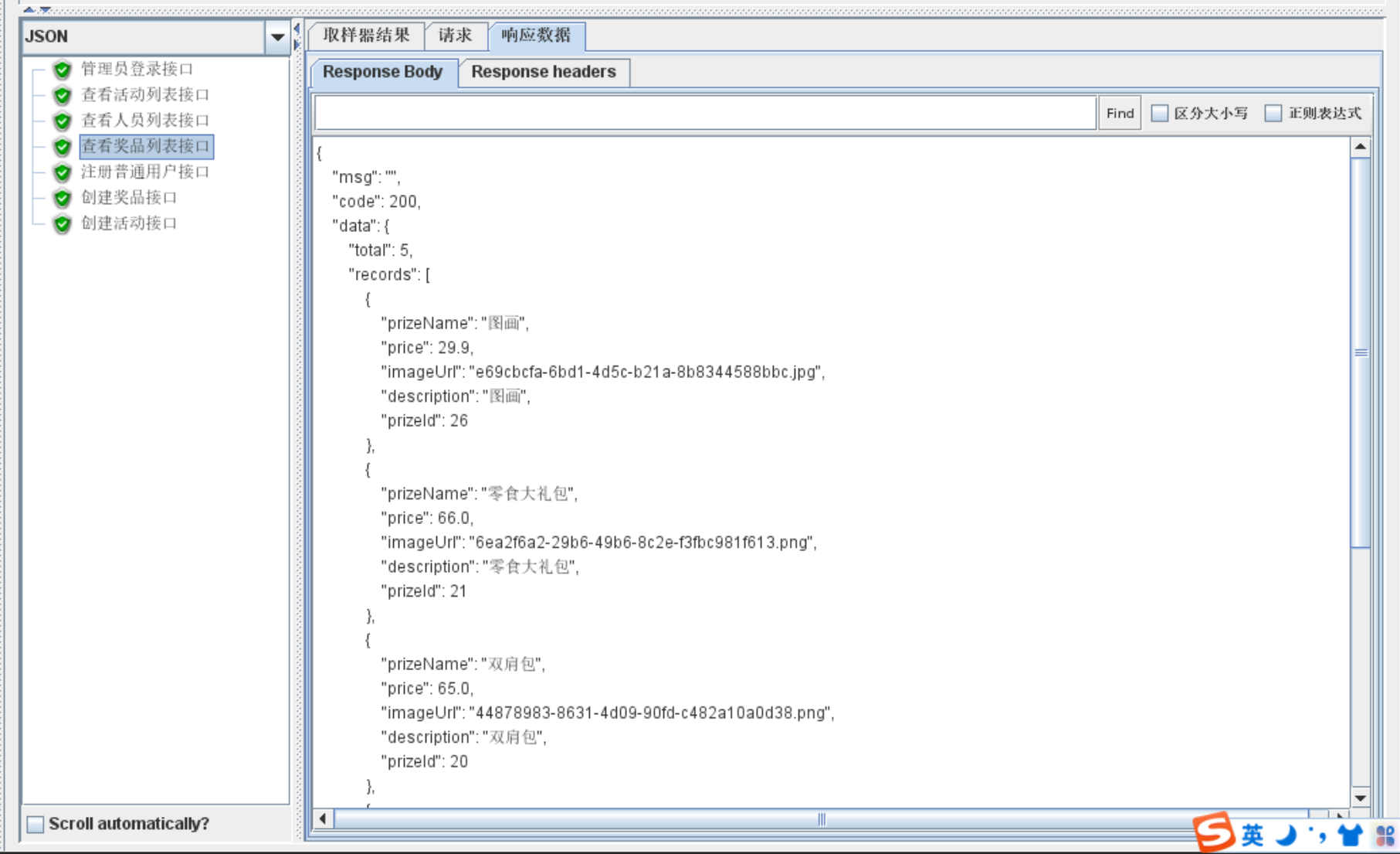 查看奖品列表接口: