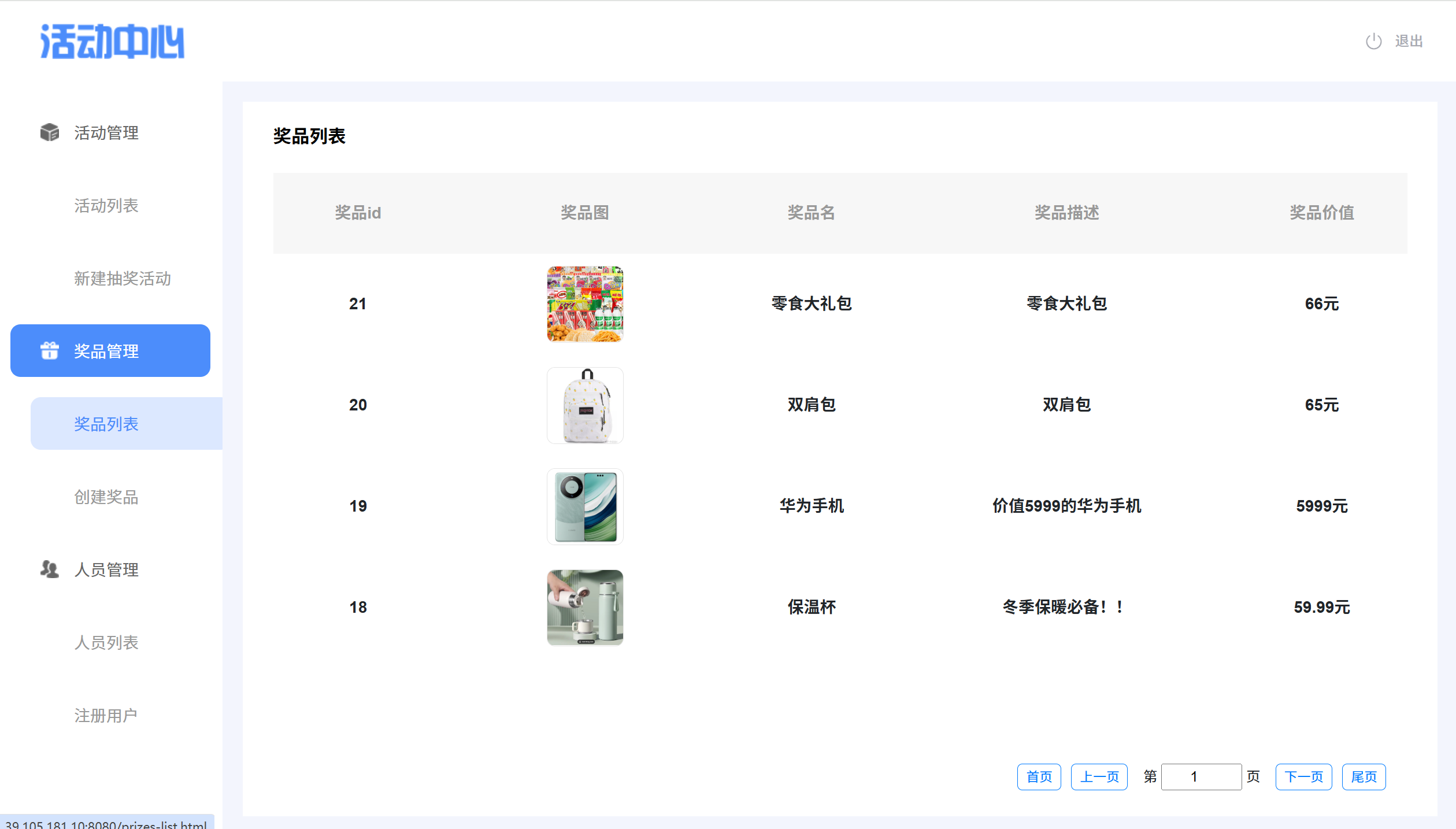 奖品列表展示页面