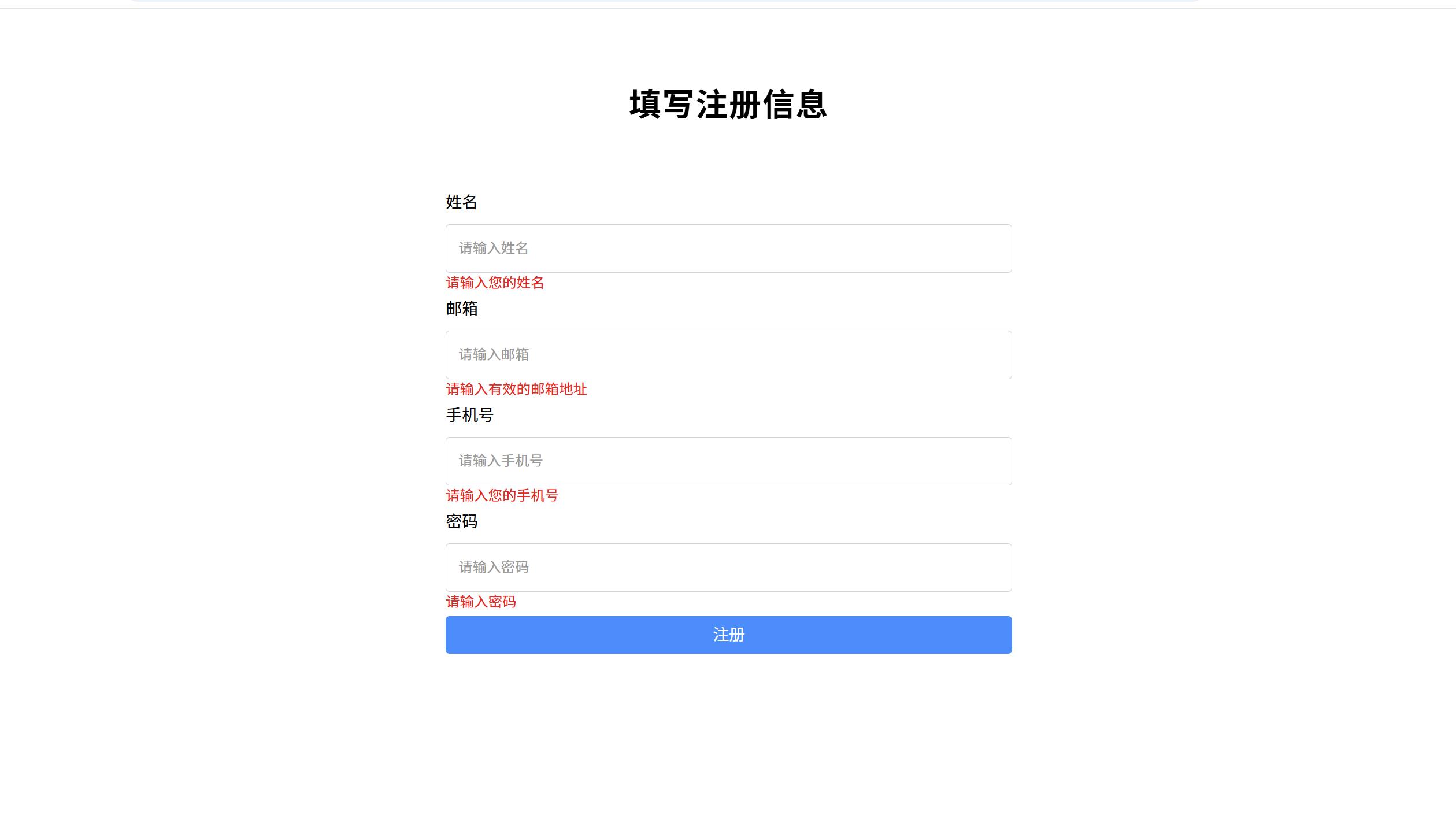 * 异常注册:手机号错误
