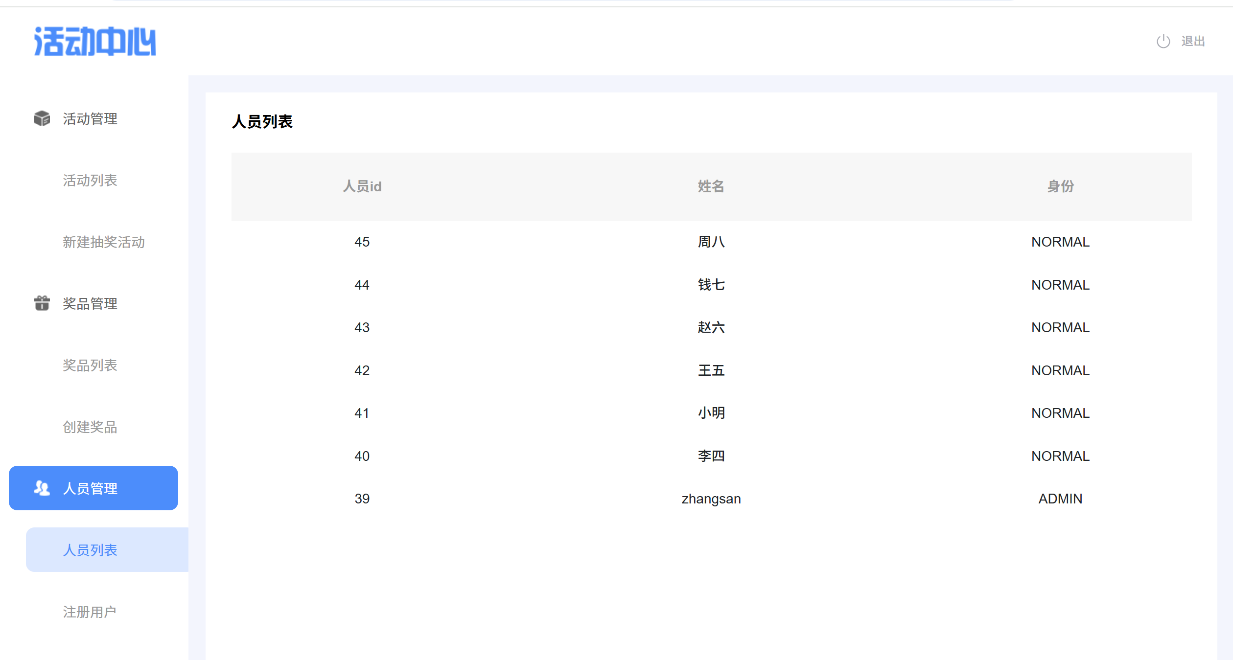 人员列表展示页面