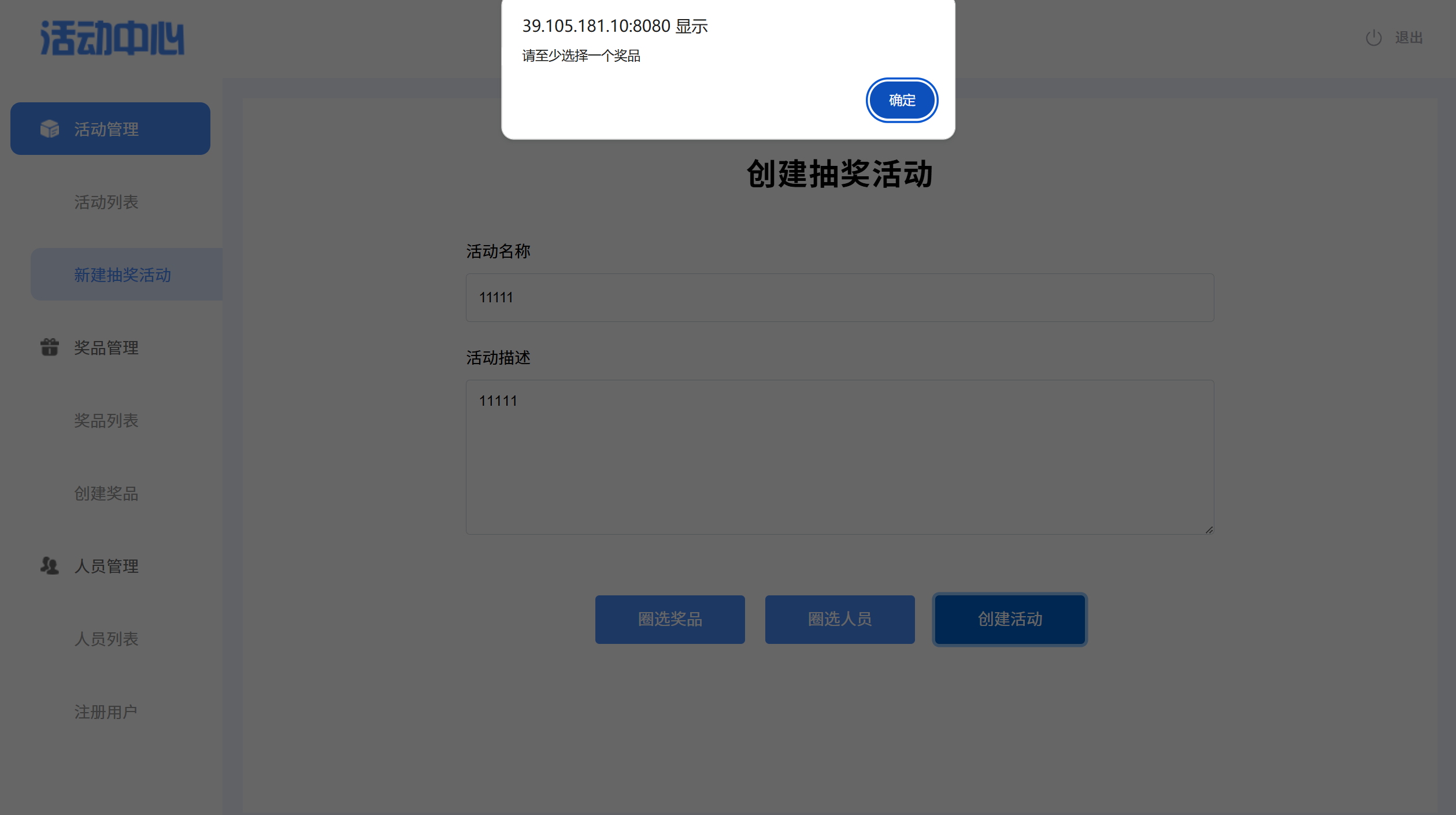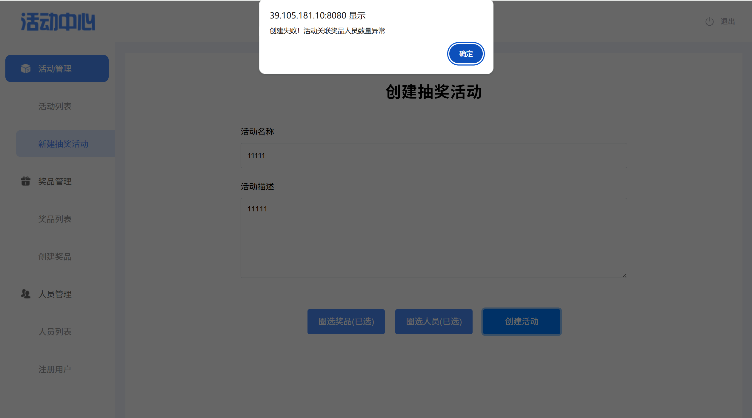 预期结果:弹窗提示奖品人员数量异常
