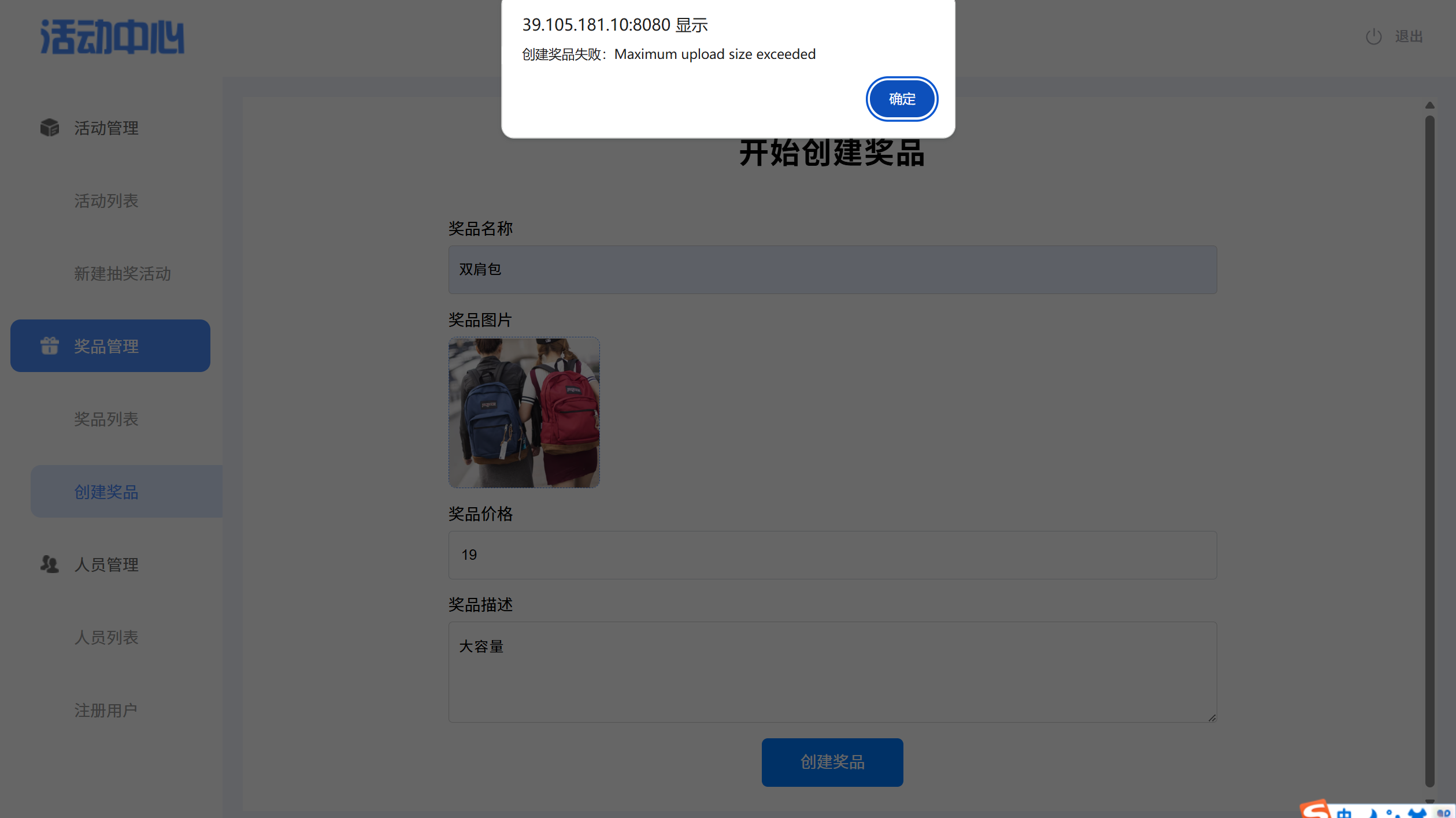 奖品创建页面
