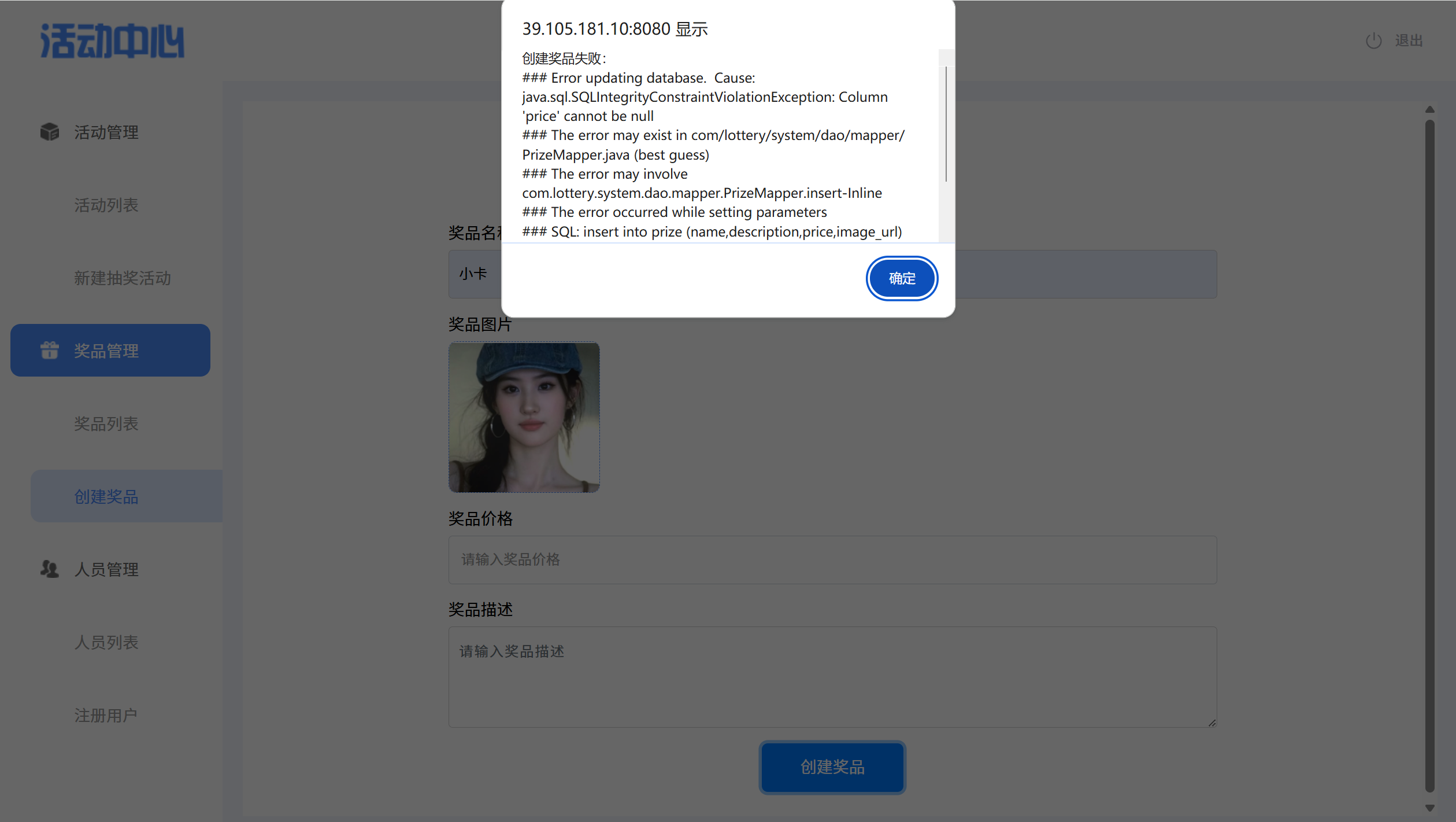 * 创建奖品包含空值
