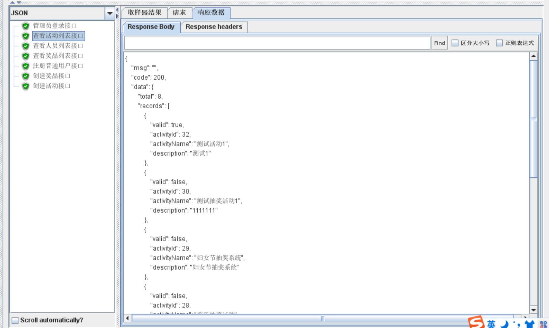 查看活动列表接口: