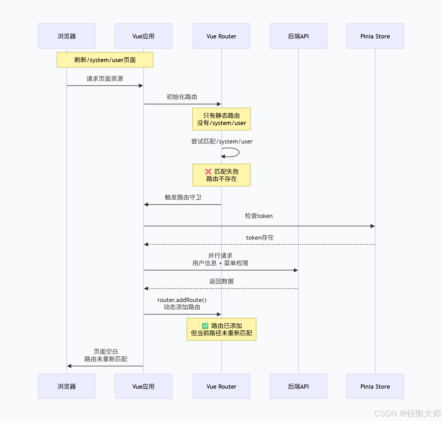 | API返回后 | 无需操作 | 路由已添加 | 但未触发重新匹配 |