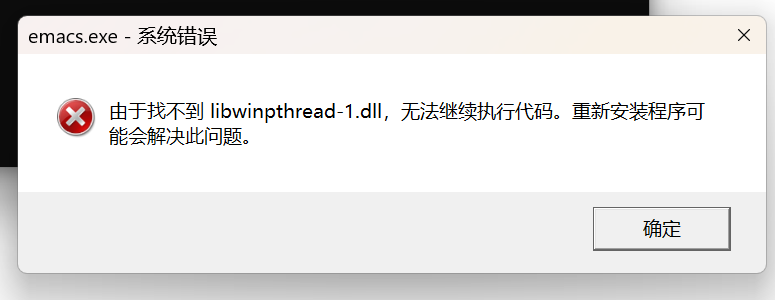 构建完成后,在 ucrt64 中能够正常启动 emacs 应用,但是用鼠标双击打开,会提示缺少 libgmp-10.dll 与 libwinpthread-1.dll库。