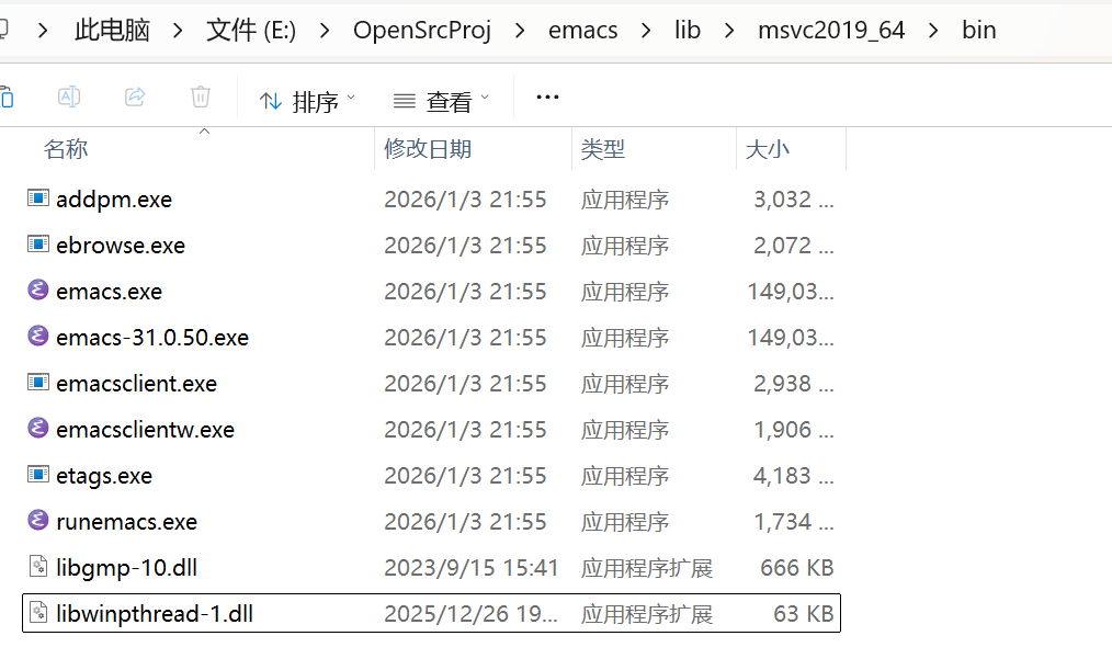 # --prefix=E:/OpenSrcProj/emacs/lib/msvc2019_64 (指定安装路径)