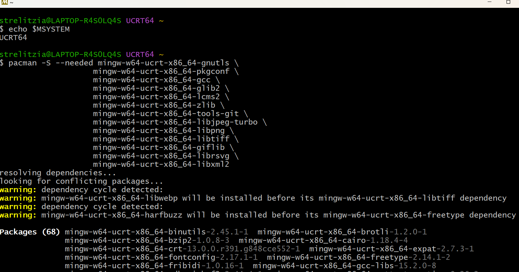 | 工具链前缀 | 软件包没有 mingw-w64-x86_64- 前缀,例如直接叫 gnutls | 软件包带有 mingw-w64-x86_64- 或 mingw-w64-ucrt-x86_64- 前缀 |