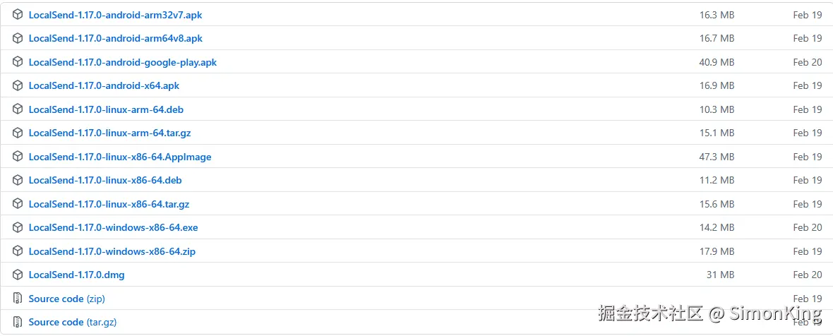 根据平台下载对应的平台安装包。安装包可以从官网上下载,也可以使用GitHub的最新release包: