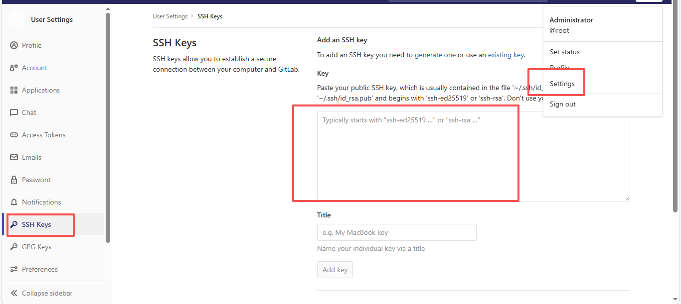 [root@gitlab gitlab]# sed -i "/gitlab_shell_ssh_port/a gitlab_rails['gitlab_shell_ssh_port'] = 222" /data/gitlab/etc/gitlab.rb