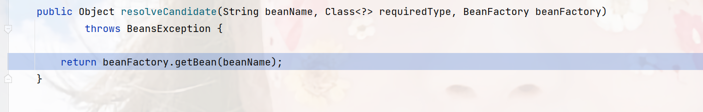 这里它传入了要注入的属性beanName和类型,但是实际上,它只是通过BeanName去查找,那么重点是beanFactory.getBean(beanName);