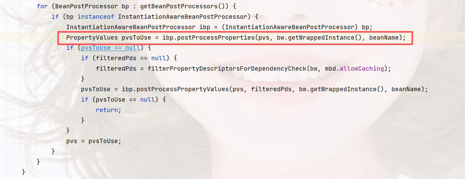 注解@Autowired、@Resource就是在这里执行的,分别通过AutowiredAnnotationBeanPostProcessor``CommonAnnotationBeanPostProcessor两个处理器执行。