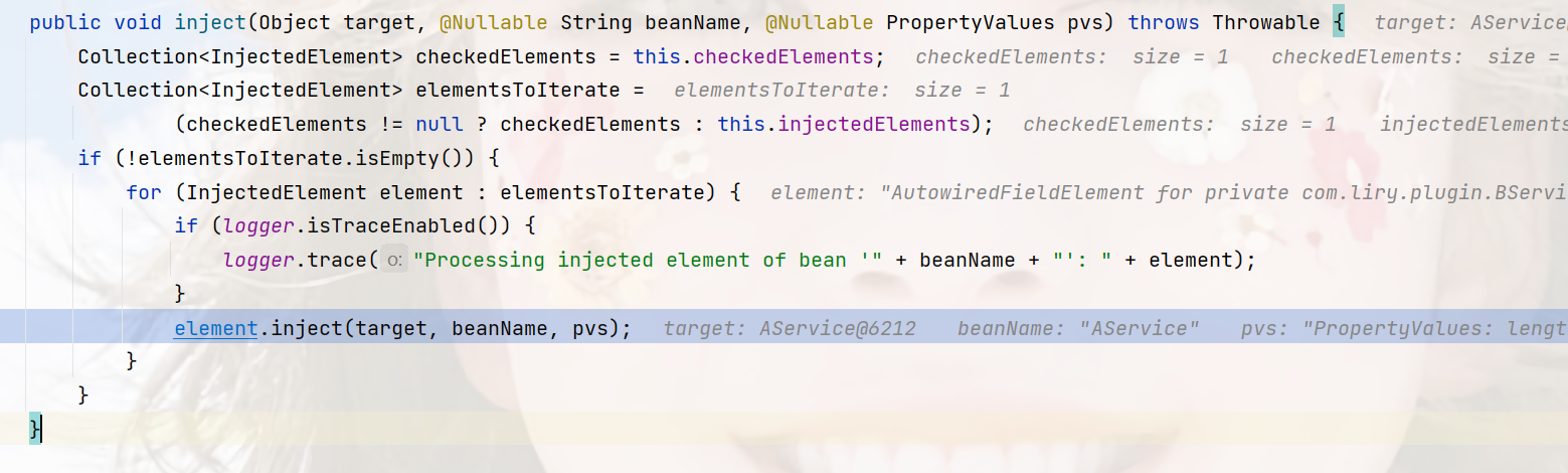 然后返回这个方法:org.springframework.beans.factory.annotation.AutowiredAnnotationBeanPostProcessor.AutowiredFieldElement#inject