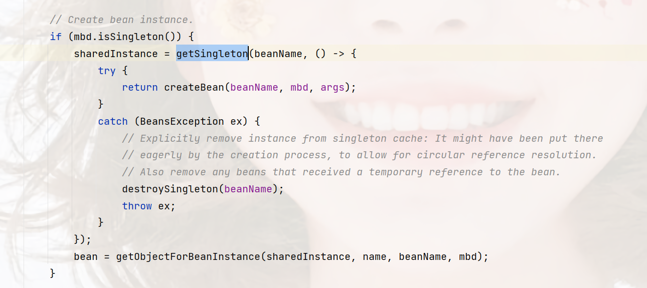 位置:org.springframework.beans.factory.support.DefaultSingletonBeanRegistry#getSingleton(java.lang.String, org.springframework.beans.factory.ObjectFactory<?>)