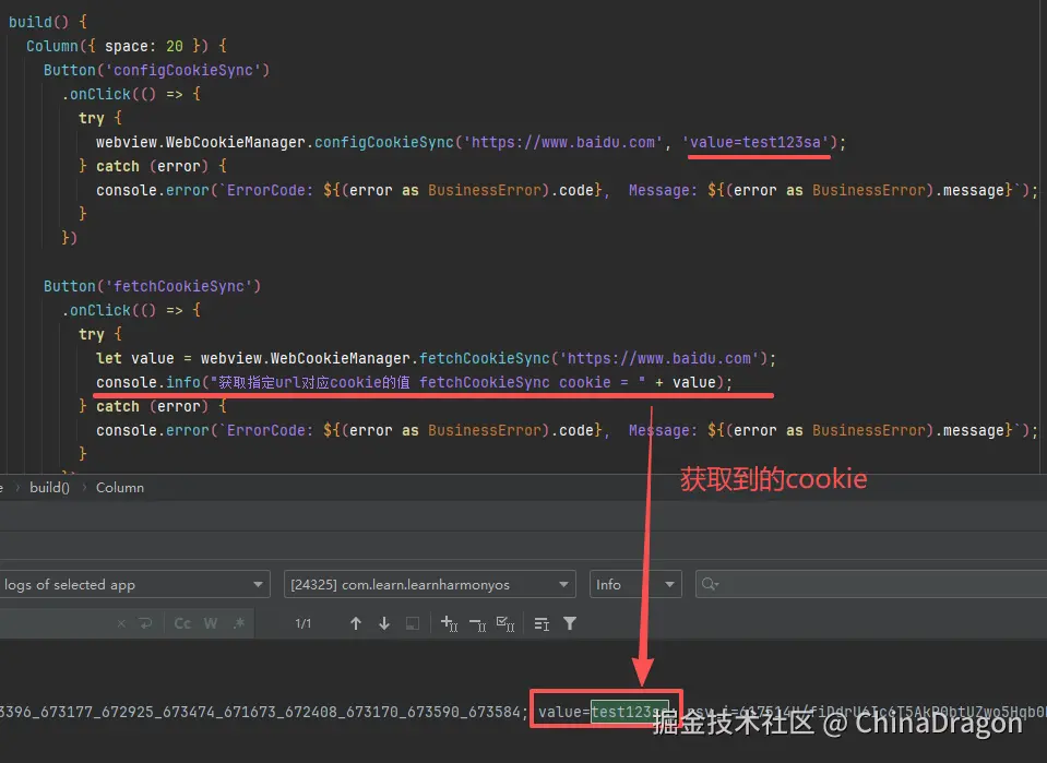console.info("获取指定url对应cookie的值 fetchCookieSync cookie = " + value);