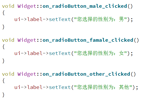 void Widget::on_radioButton_clicked(bool checked) // 此处的checked表示当前radioButton的选中状态