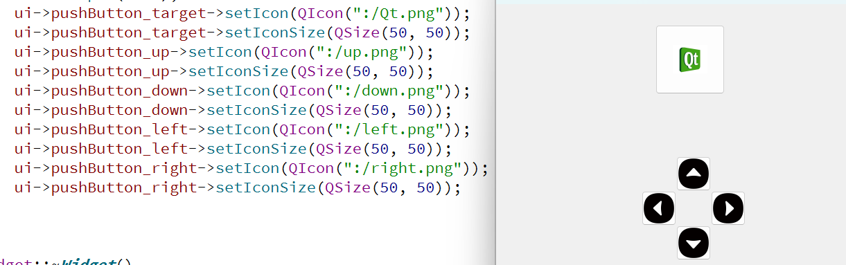 - 五个按钮的objectName分别为pushButton_target ,pushButton_up ,pushButton_down ,pushButton_left ,pushButton_right