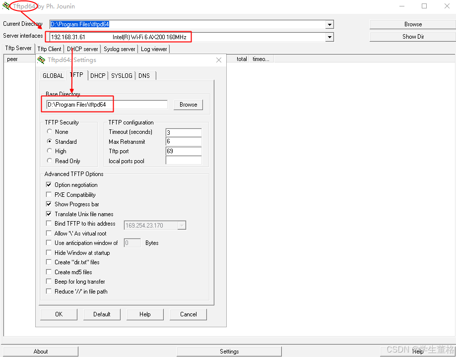 1.打开tftpd64.exe