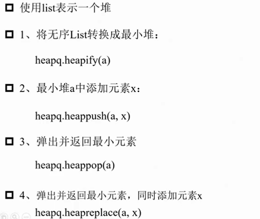 - 堆:完全二叉树,每个节点小于等于子节点(默认为最小堆)