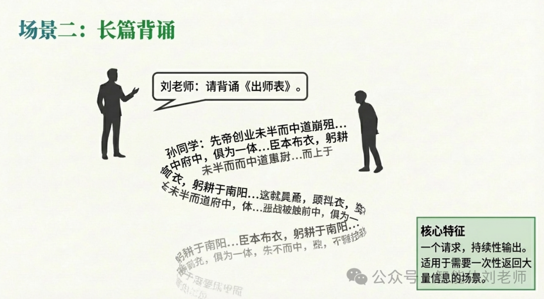 (2)流式实现方式(对应人类的问询+长时间输出方式)