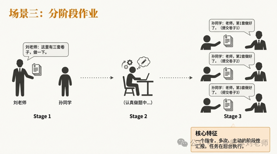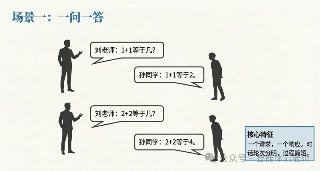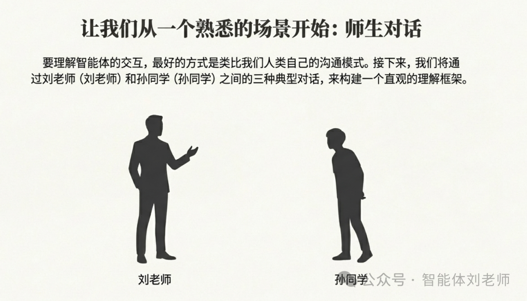基于以上刘老师与孙同学之间的三种一对一交互方式,下面我们来看看智能体之间如何用AIP/ACPs定义的三种点对点交互方式进行协作: