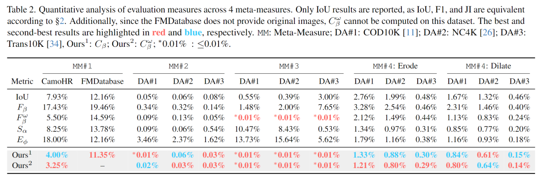 人类一致性:团队构建了首个"人类标注伪装分割排名数据集CamoHR",Context-measure与人类判断的一致性比传统指标提升41%,其中伪装专属版本Cβ^ω的表现最优;
