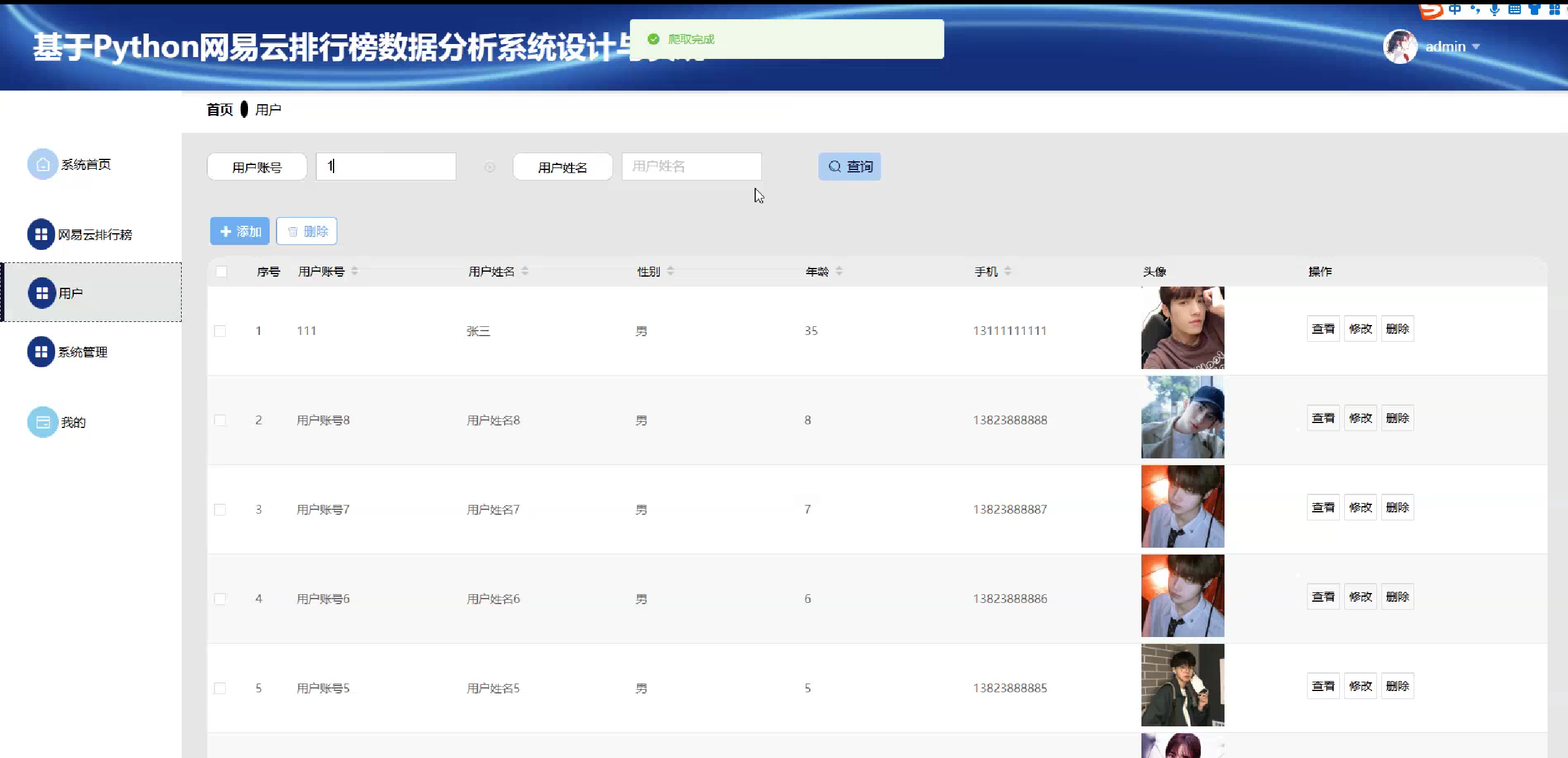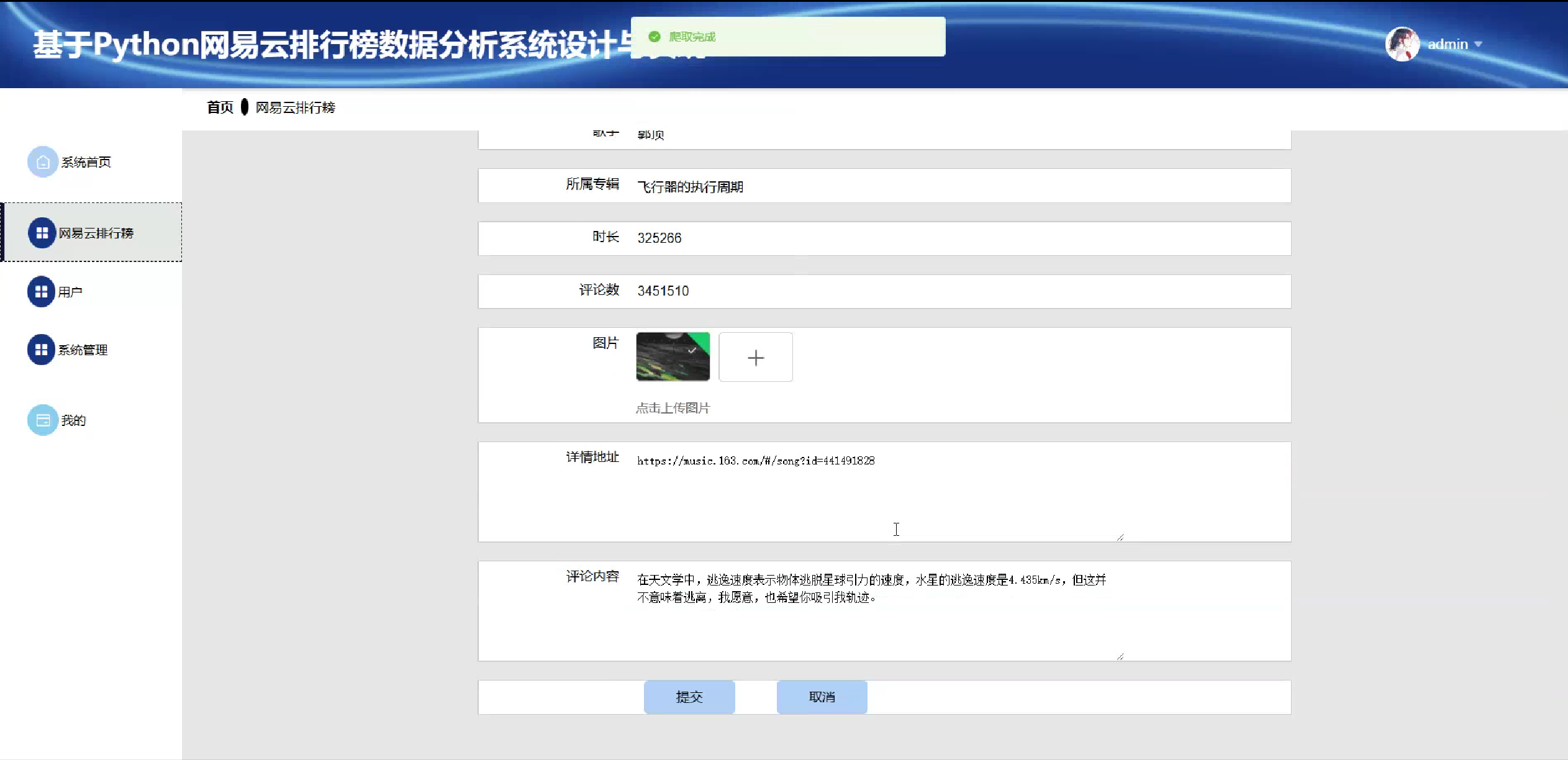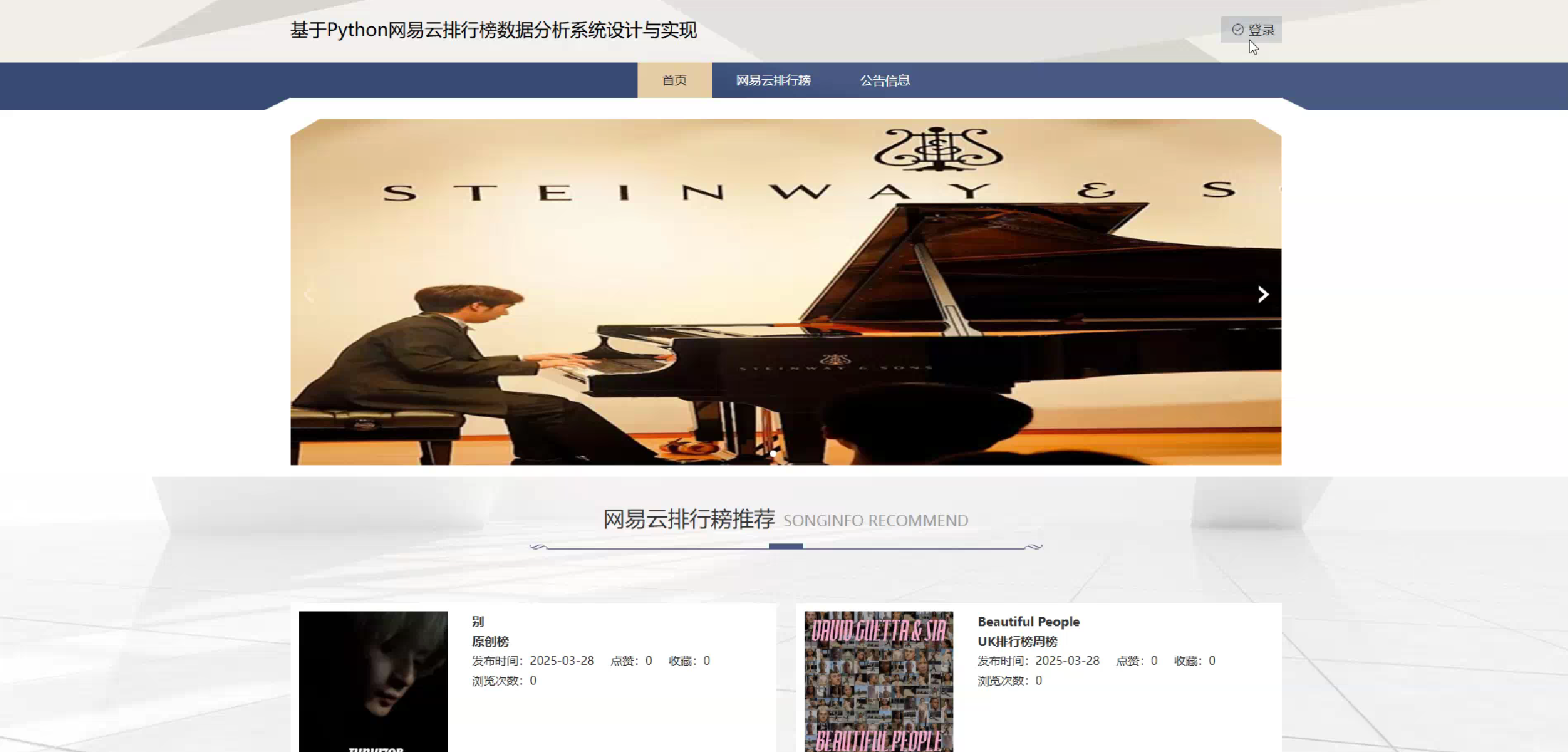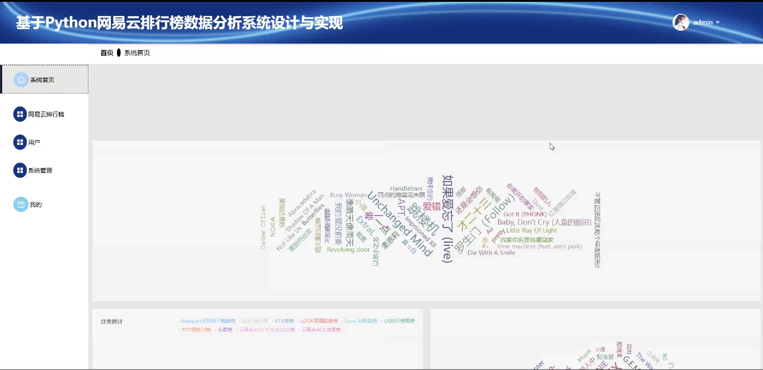 基于Python网易云排行榜数据分析系统设计与实现(源代码+数据库+论文+PPT+说明文档+部署讲解等)