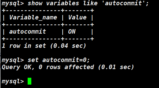 隐式提交涉及到MySQL的autocommit模式,当autocommit = on 时代表隐式模式开启,每条SQL语句都会被自动提交。当 autocommit = off 时就默认为显示提交