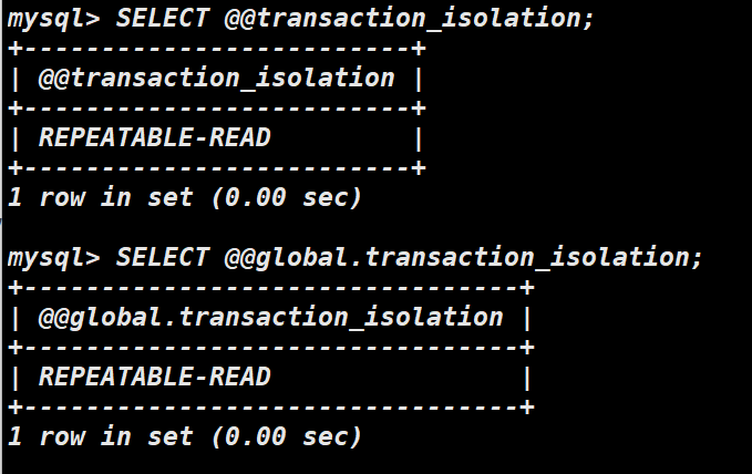 设置当前会话隔离级别set 【session/global】transaction isolation level 【read uncommitted | read committed | repeatable read | serializable】