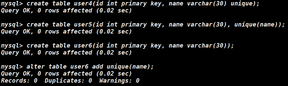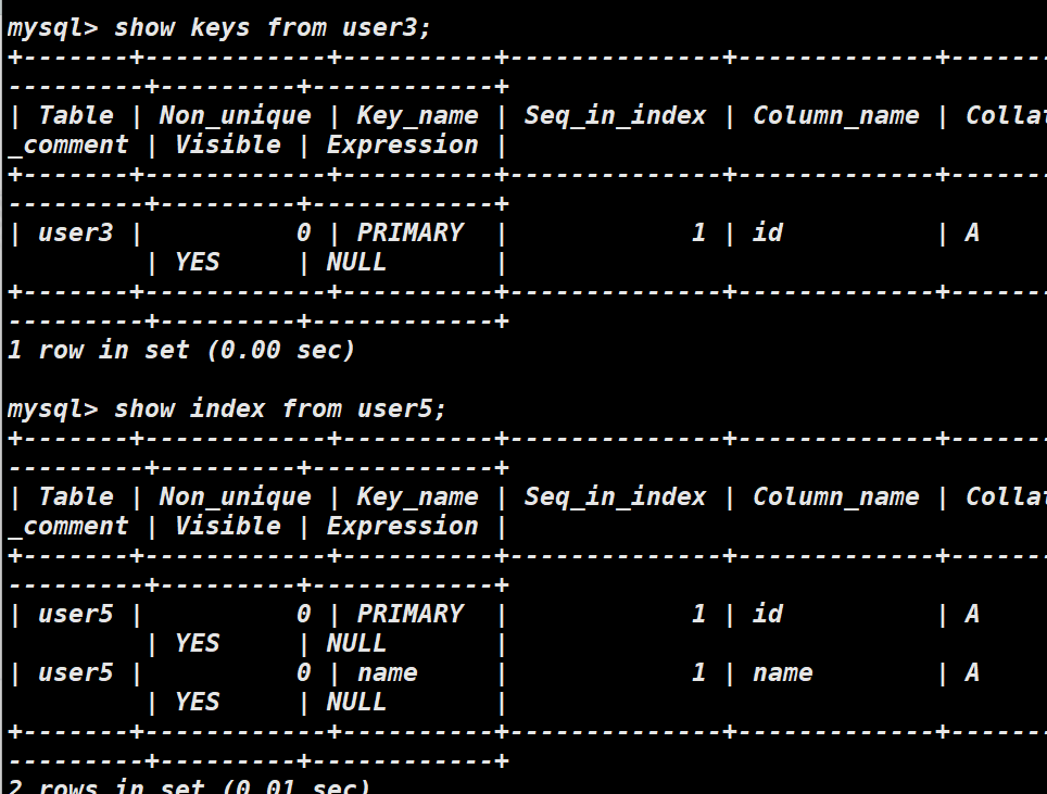 创建索引有三种方式,第一种直接跟在列后面,第二种在最后面指定列,第三种创建完表后对指定列添加索引