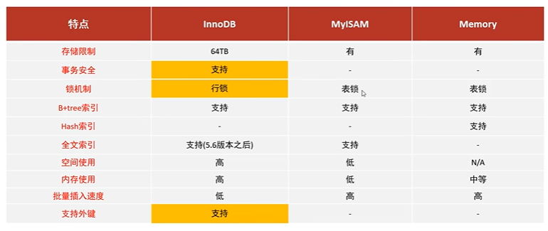 3:存储引擎特点