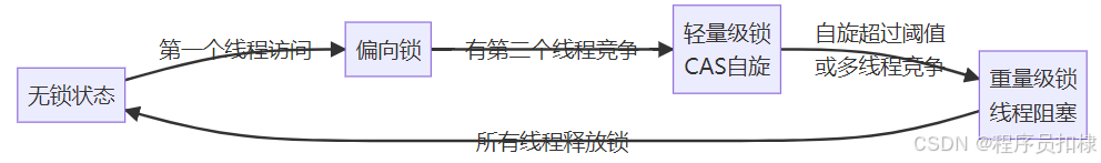 锁升级过程: 为了平衡性能和安全,JVM采用了锁升级策略: