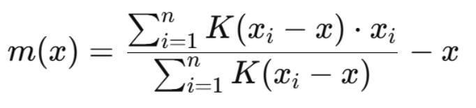 与 K-Means 不同,MeanShift 不需要预先指定聚类个数,而是通过在特征空间中不断向高密度区域"漂移",最终收敛到密度峰值点,实现自动聚类。
