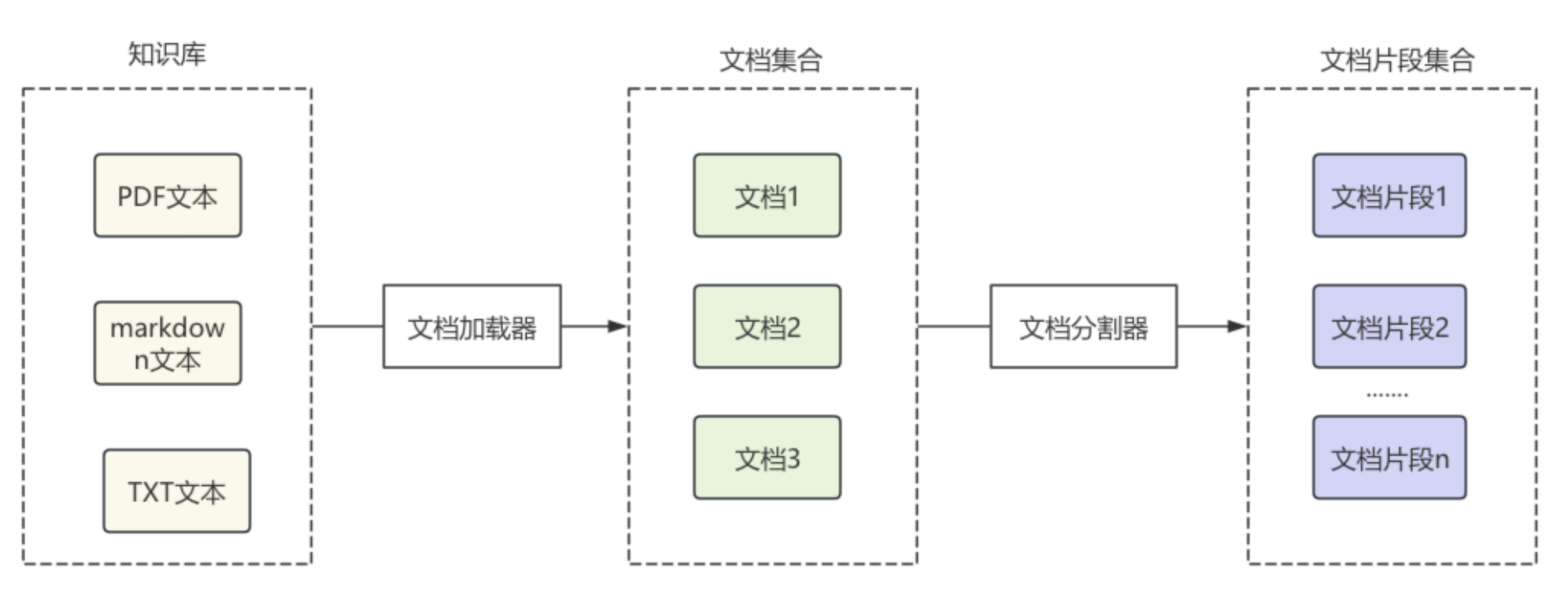 | 文档分割器 | 将加载的文档分割成文档片段 | RecursiveCharacterTextSplitter(递归字符文本分割器) |