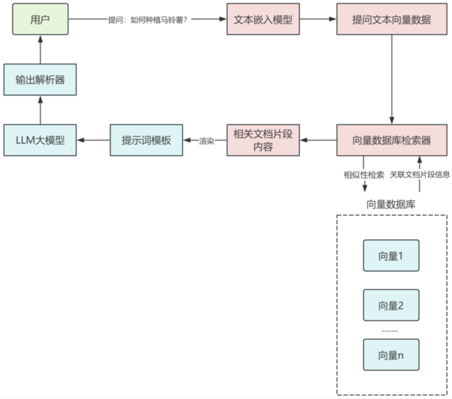 | 文本检索器 | 根据用户提问在向量数据库中进行检索 | VectorStoreRetriever(向量数据库检索器) |