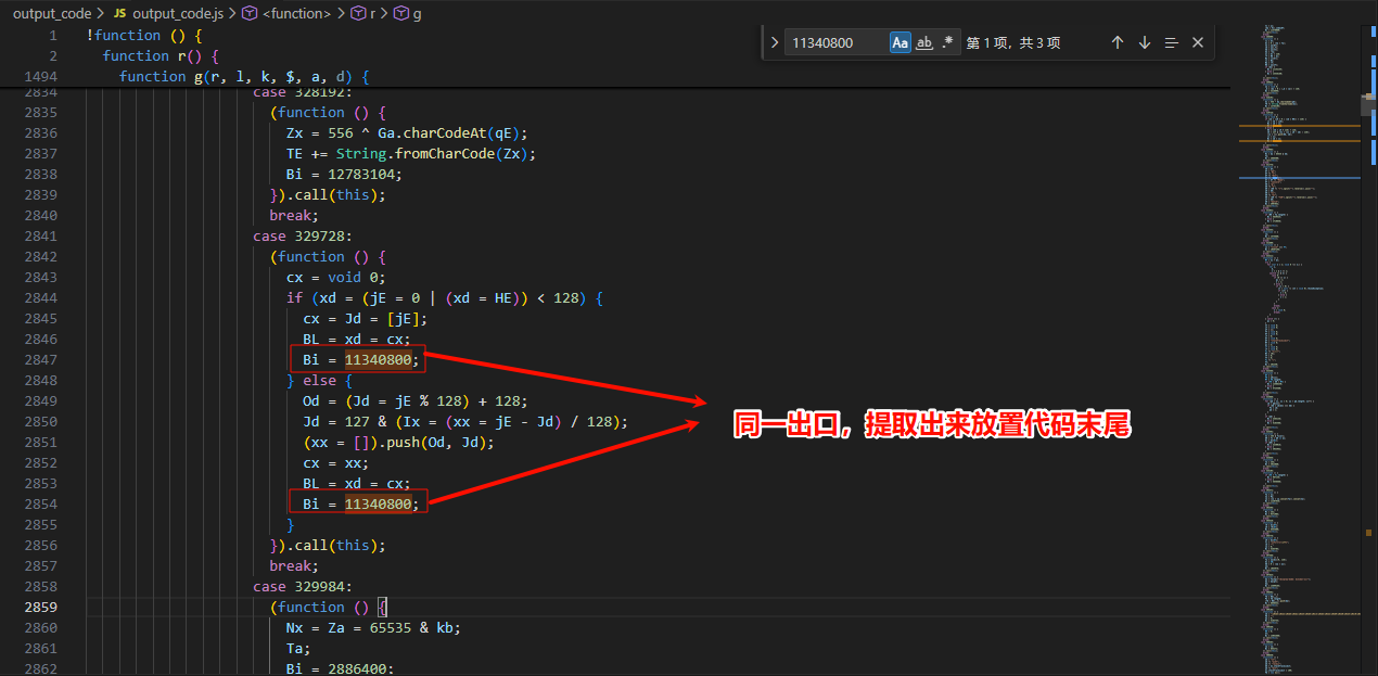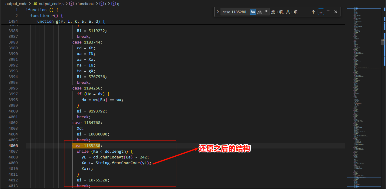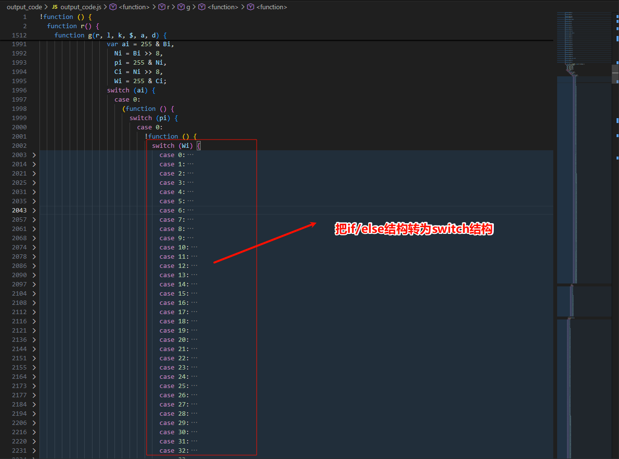 此时代码中的case关系均为if/else结构,但是如果你单纯的只时按照这种关系还原成顺序结构,你会发现代码会爆内存,只是因为代码中有大量的case共用一个相同的函数功能,如果不提取出来,还原之后的代码会成指数级暴增,导致运行内存爆炸。