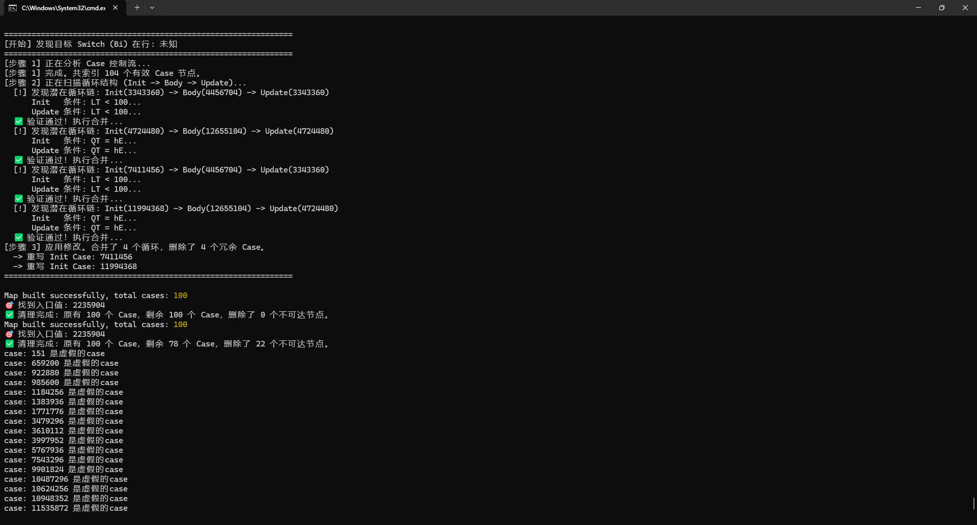 通过上一步骤之后可以得到大量的case,但是呢其中有一些是无法运行到的虚假的case,这个时候呢就需要去构造一个函数来辅助我们,然后插装。