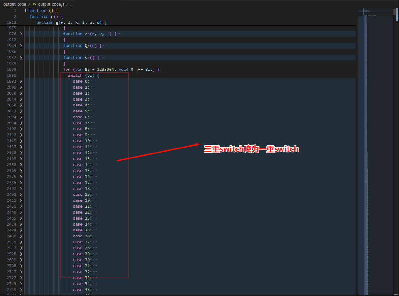 通过如上的步骤还原,现在我们得到了三个switch(switch (ai)、switch (pi)、switch (Wi))