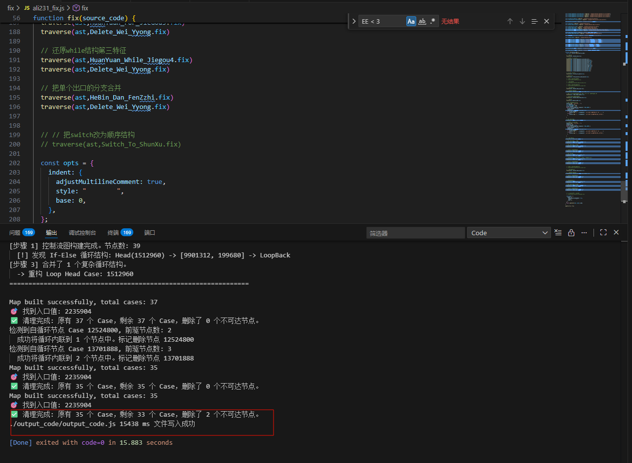如下图就是我编写的还原插件,其实大部分的代码都是重复的,只是当时编写时发些有些没有还原,只是重新去匹配没有还原的代码再把它转换