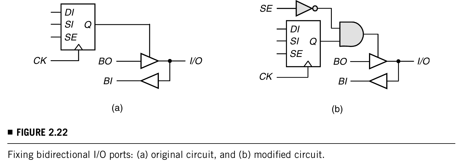 图a,scan cell控制I/O的方向,shift operation时scan cell的值会变,所以图中的三态buffer可能处于active状态,这时候如果BO和I/O(测试机控制值)不一致,就会发生冲突。